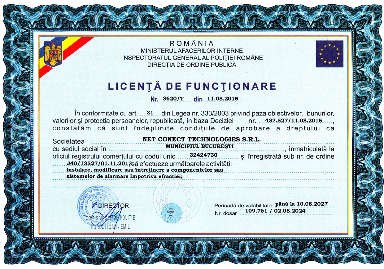 Conținutul acestui site (texte, imagini, grafice, butoane, programe, elemente de grafică web, scripturi, baze de date și orice alte date) reprezintă proprietatea S.C. NET-CONECT TECHNOLOGIES S.R.L. și este protejat conform Legii Drepturilor de autor și legilor privind dreptul de proprietate intelectuală și industriala. Folosirea fara acordul S.C. NET-CONECT TECHNOLOGIES S.R.L. a oricaror din elementele enumerate se pedepseste conform legilor in vigoare.